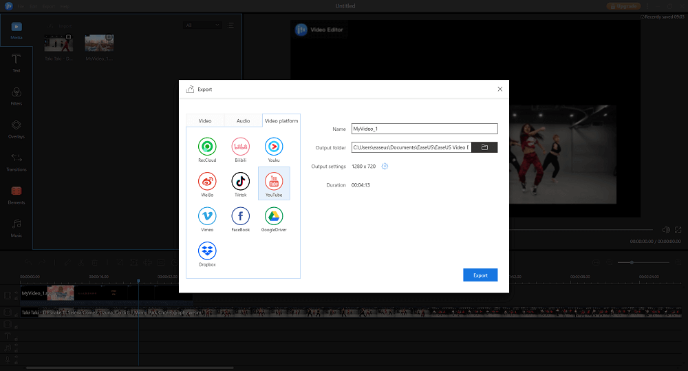 Step 4. Export your reaction video to YouTube or other video platforms.